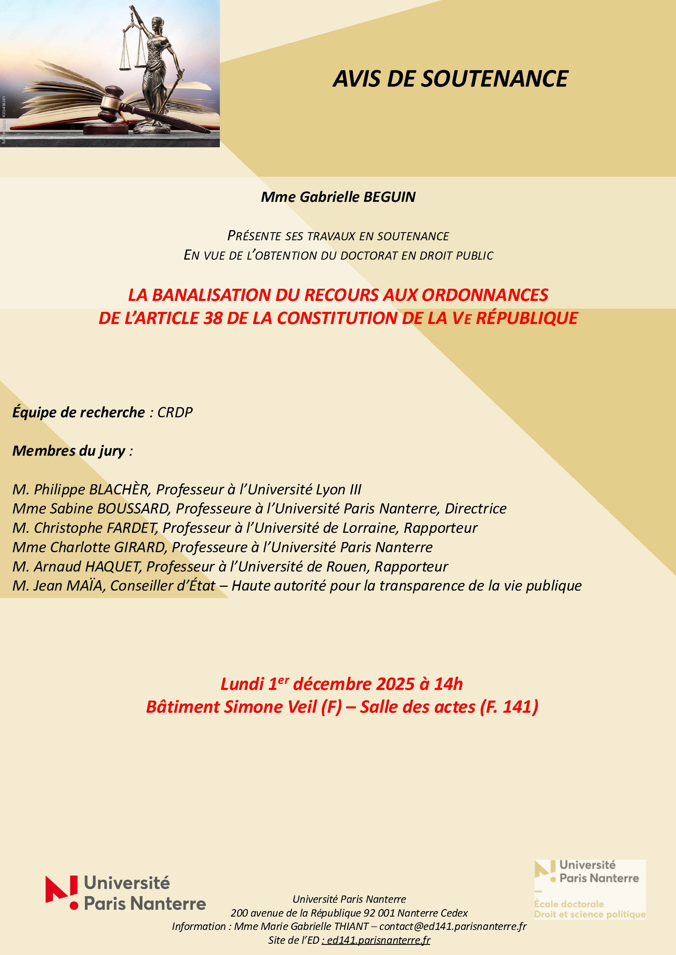 - ED 396 - Soutenance de M. BEAUFILS Raphael17 novembre 2025
